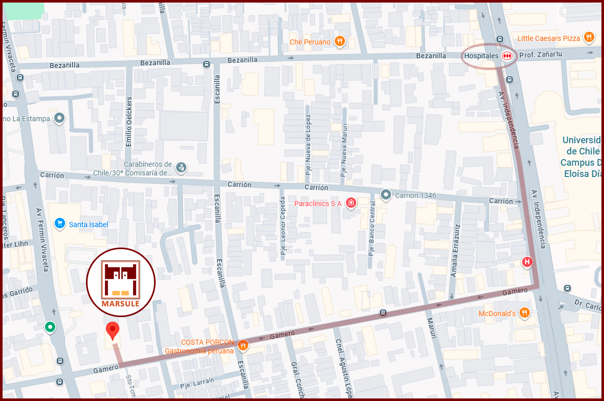 Estamos ubicados en Gamero N° 1541, Independencia, a pasos del Metro Hospitales (L3):